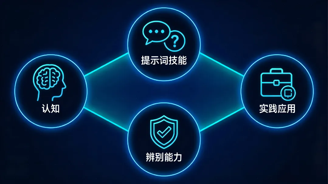 认知层面:理解AI能做什么、不能做什么。大语言模型基于概率生成,可能"听起来很对"却"事实全错"。
