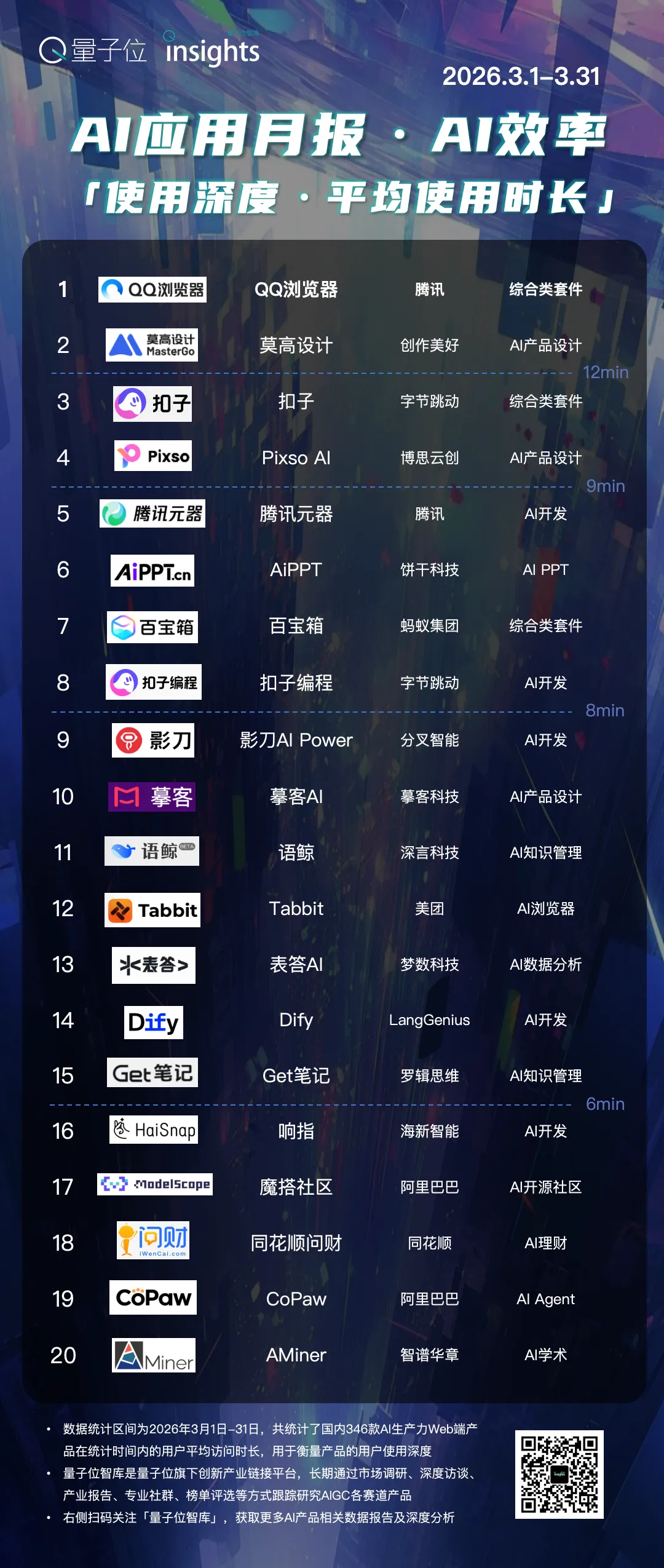 免责声明:由于渠道和数据限制,本研究可能存在继续完善之处,量子位智库将在后续跟进中持续完善。本篇研究仅供读者就我国AI应用和产品进行参考,不对涉及的产品进行优劣评价,同时不构成任何投资建议。