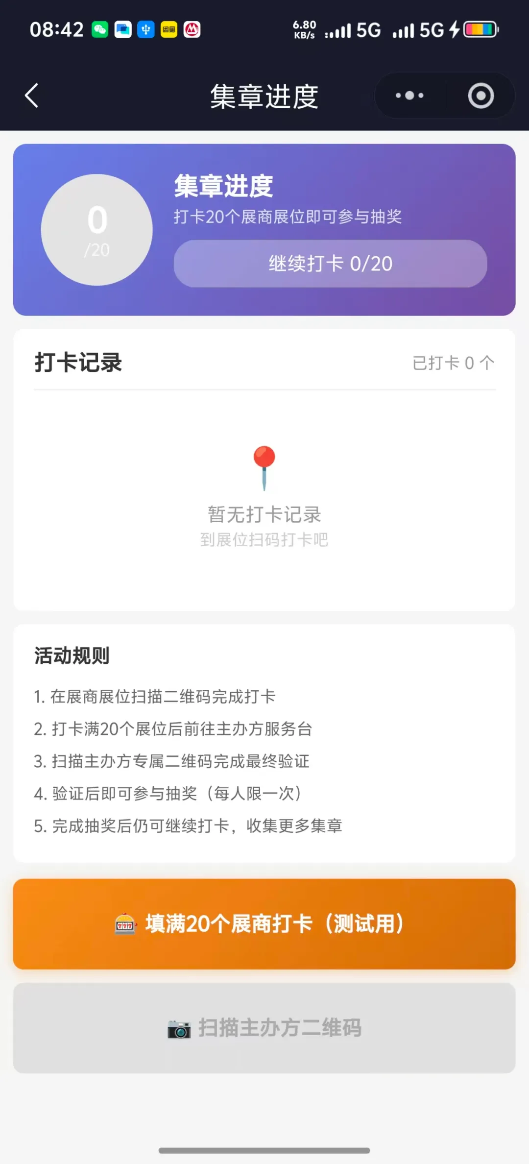 另外一个就是打卡了,我之前参加其他的一些展会活动,都普遍采用电子打卡的形式。这样一来速度更快,大家准备起来也方便(不用再做印章,还要检查墨水,还要怕图章缺失)。