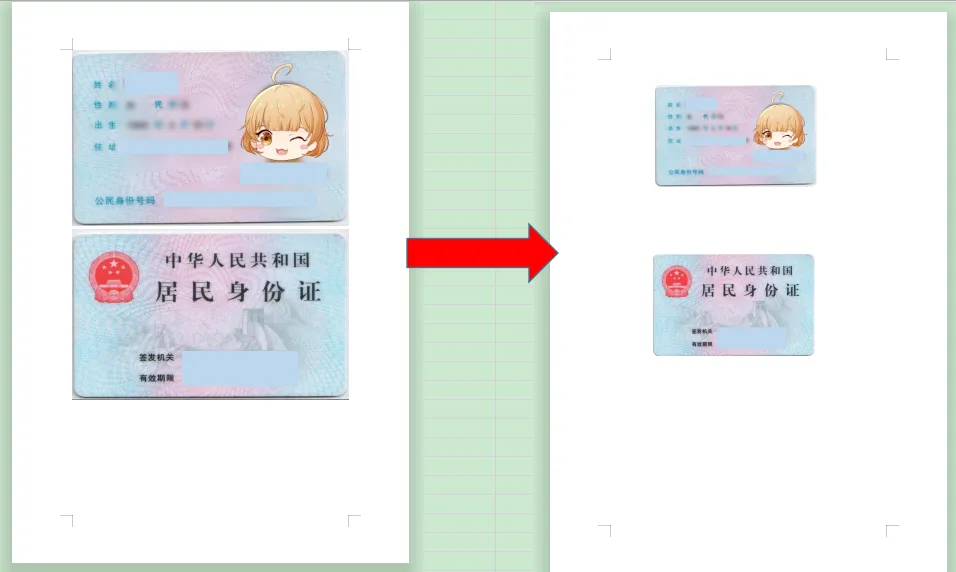 如何将自己制作的身份证扫描件从下图中的左图变为右图呢?