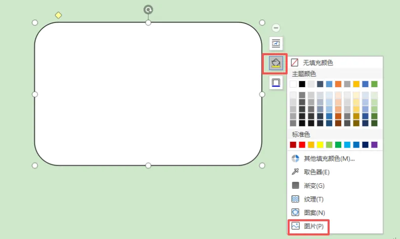 5.选中图片,点击这个黄色油漆桶(形状填充)——图片: