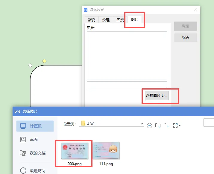 6.选择图片——(找到刚才存放照片的文件夹)——先选择一面——确定: