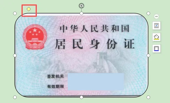 8.现在进行微调整,用鼠标拖动上图那个黄点,调整圆角的大小,与身份证的圆角保持一致即可(只需拖动一个点即可):
