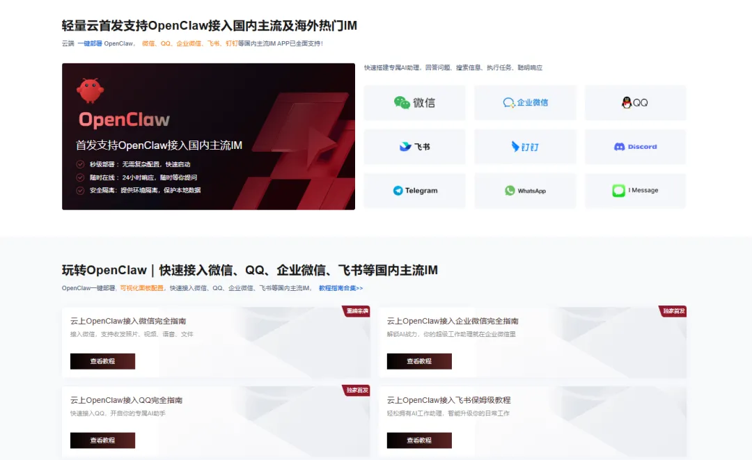 根据腾讯云官方最新发布的指南,OpenClaw 已经首发支持接入国内主流 IM,微信的接入方式简直可以说是“傻瓜式”的: