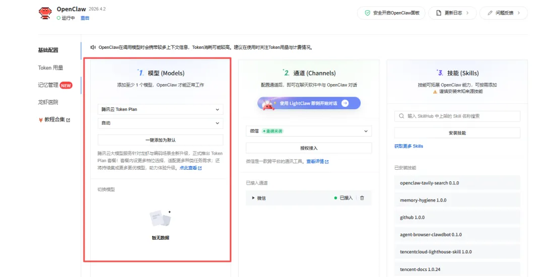 直到最近,我在腾讯云开发者社区看到了 OpenClaw(小龙虾)。这是一款支持私有化部署的 AI Agent 框架。最让我惊喜的是,轻量云上的 OpenClaw 最新版原生支持接入微信,并且提供了强大的 Skills(插件) 扩展能力,一键部署和配置,简直不要太心动