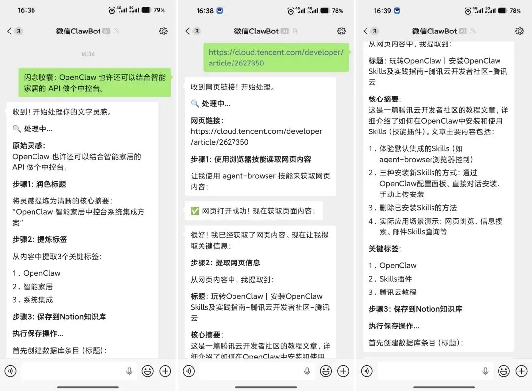 我一直在寻找一种无缝的解决方案:能不能在微信里直接把文章或灵感丢给一个助手,它不仅能帮我提炼核心摘要,还能自动分门别类地存入我的个人知识库?