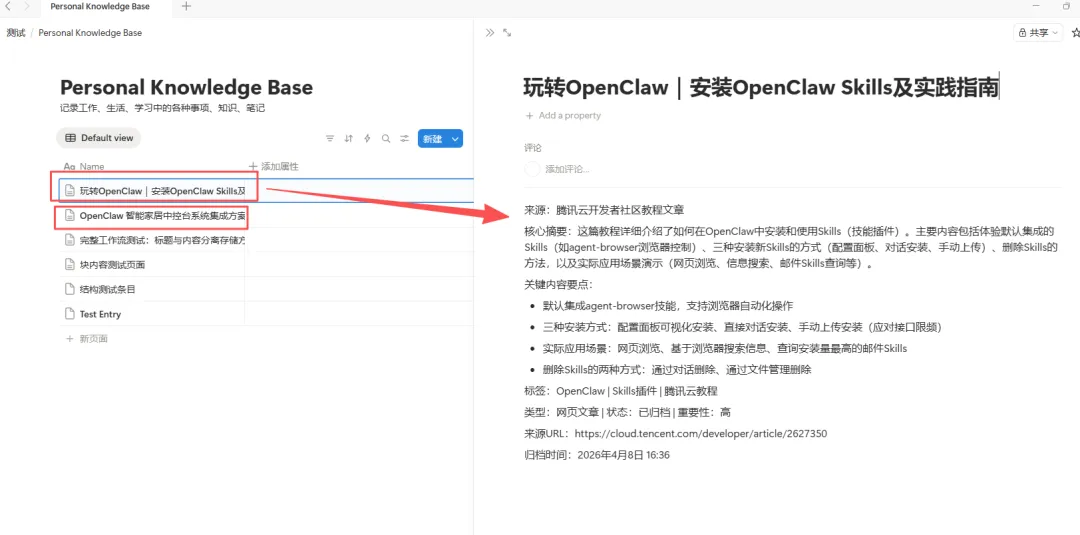 打开 Notion 一看,一条结构化的记录已经稳稳地躺在我的数据库里了!