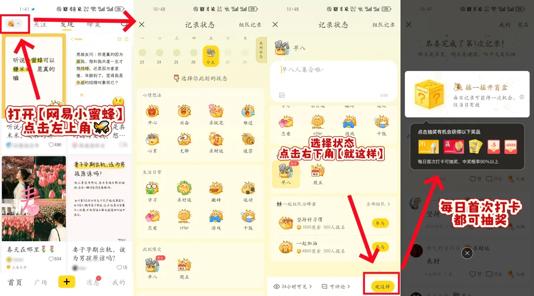1、网易小蜜蜂打卡活动
