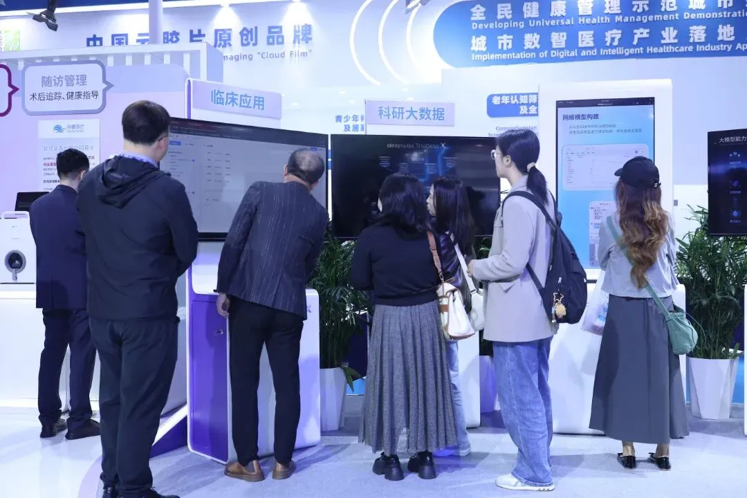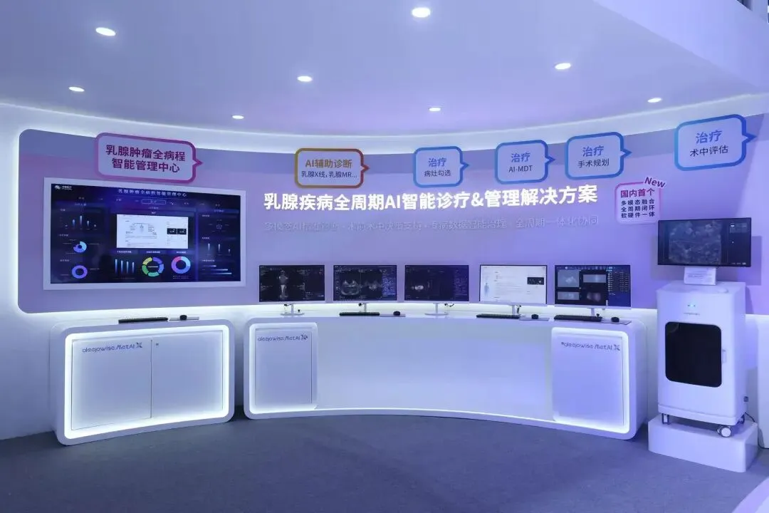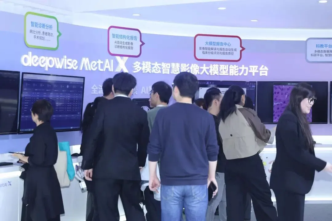 深睿医疗今年在CMEF上以“场景驱动、全域赋能”为核心,让AI医疗从“技术展示”变成“场景落地”,真正贴合临床实际需求。展台围绕疾病诊疗全流程脉络,以具备影像和文本大模型能力的Deepwise MetAI X和Deepwise TrioData X为核心支撑平台,构建起适用于各种疾病诊疗全流程的场景解决方案,实现了从筛查与评估、诊断与治疗到科研与管理的全链路覆盖,完美诠释了“AI原生医疗”的核心内涵——让AI深度嵌入临床工作流,而非仅仅是单一环节的辅助工具。
