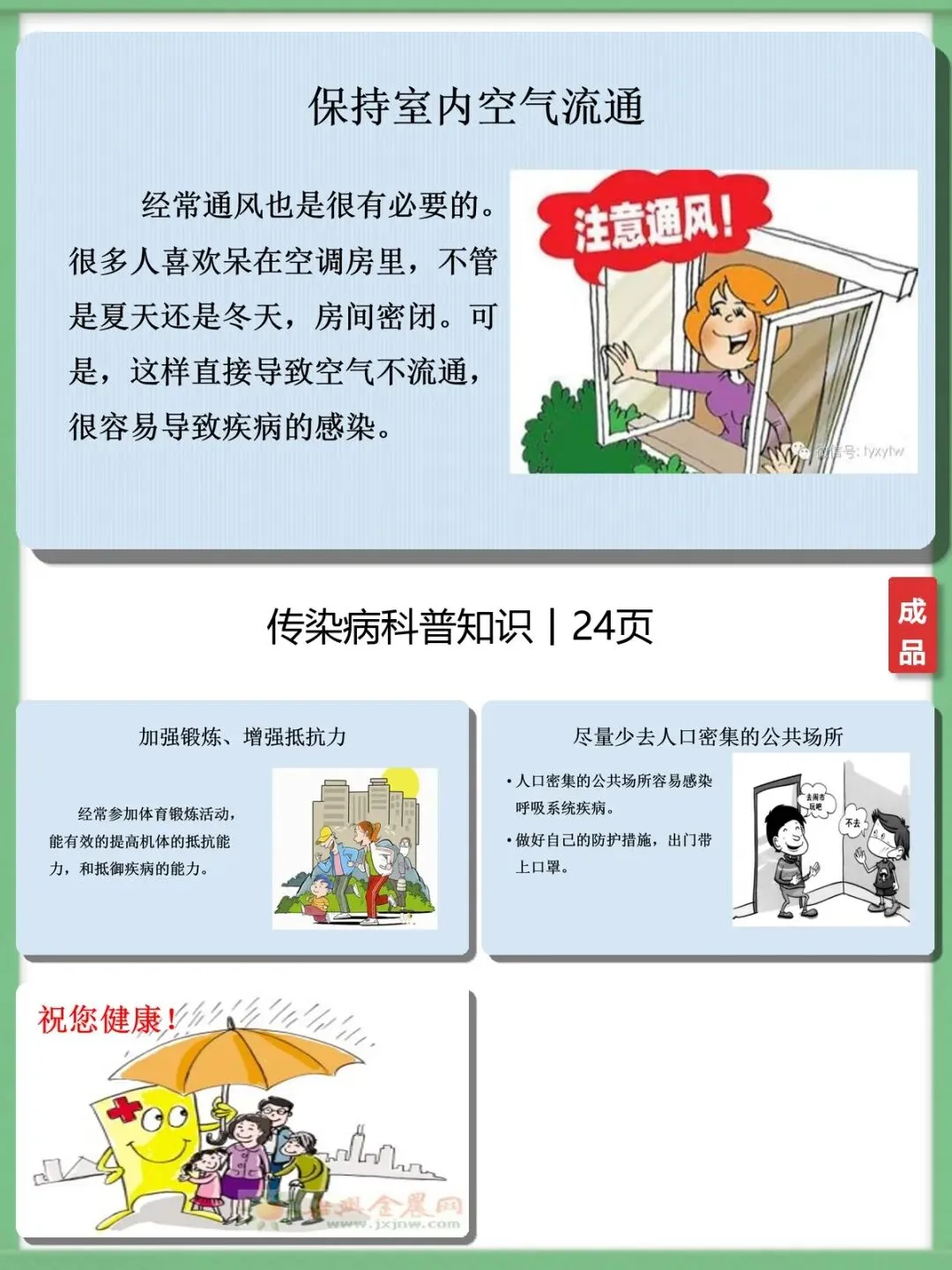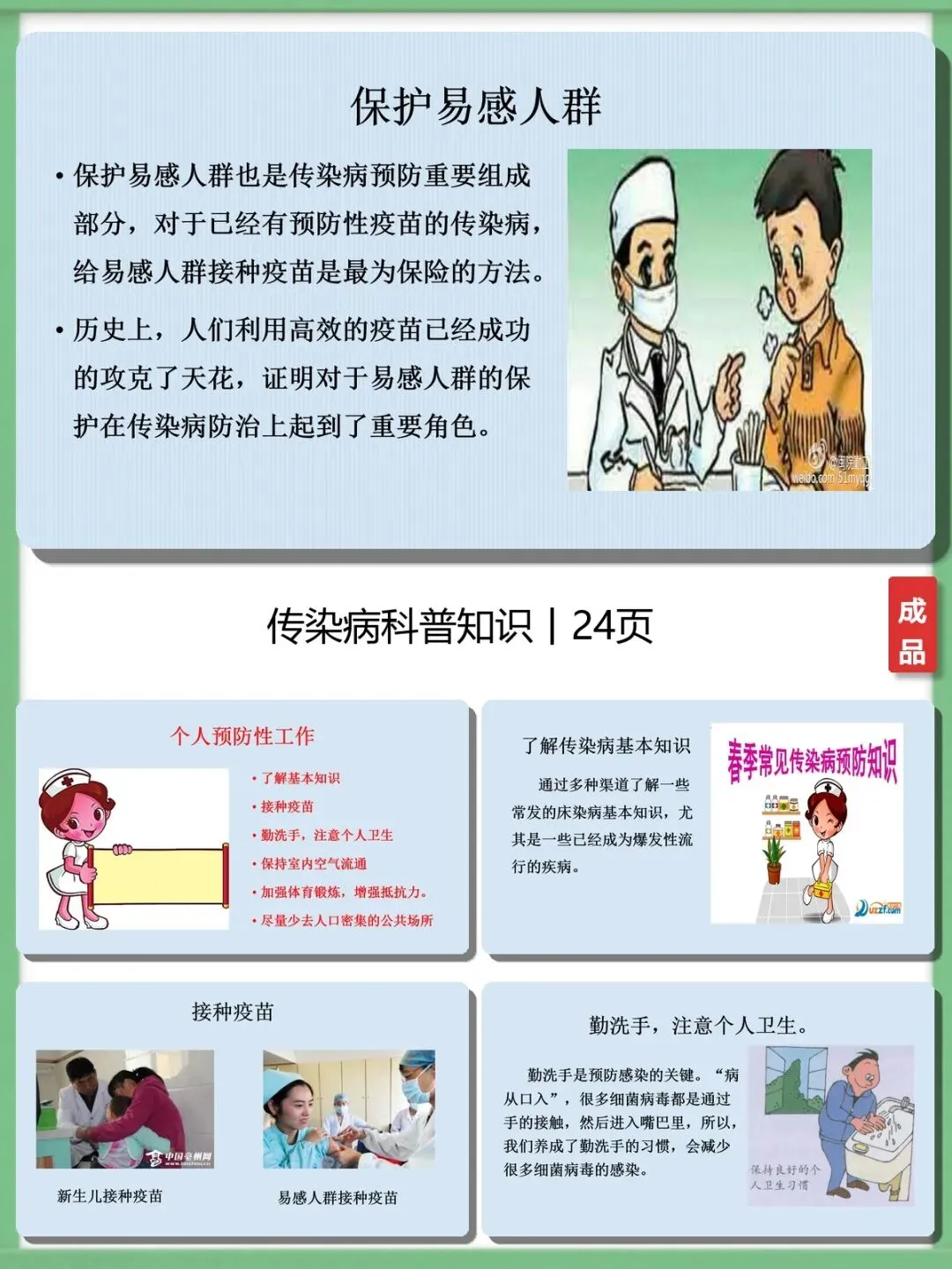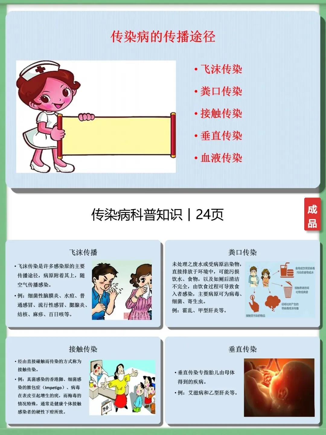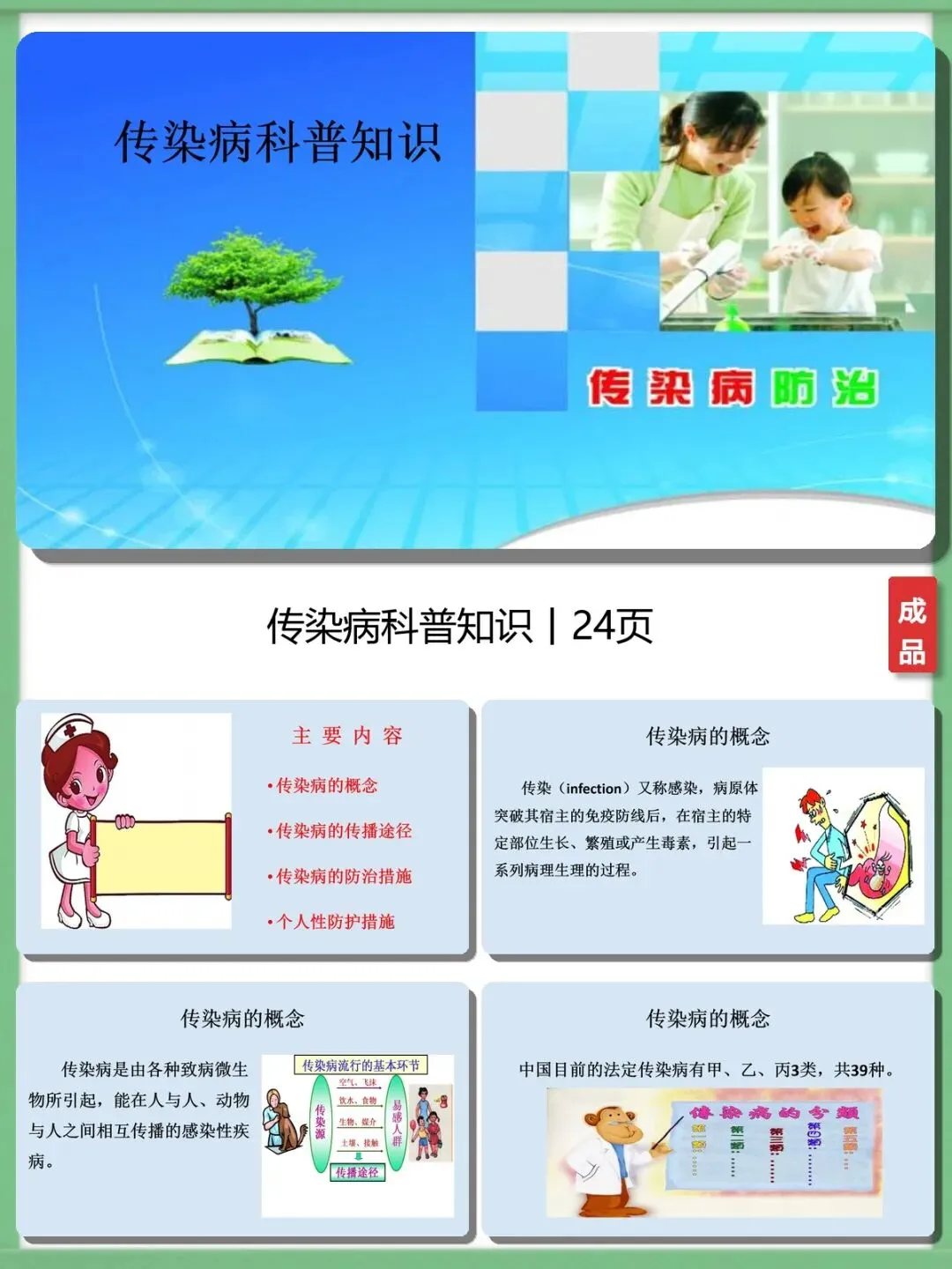 本PPT讲解了传染病科普知识,介绍传染病是致病微生物引发、可人际或人畜传播的疾病,我国法定分甲、乙、丙三类共39种。详解飞沫传播、粪口传播、接触传播、垂直传播、血液传播5种途径。围绕控制传染源、切断传播途径、保护易感人群防控原则,给出勤洗手、戴口罩、接种疫苗、通风换气、增强免疫力等实用个人防护方法,助力大众做好健康防护,远离传染病。