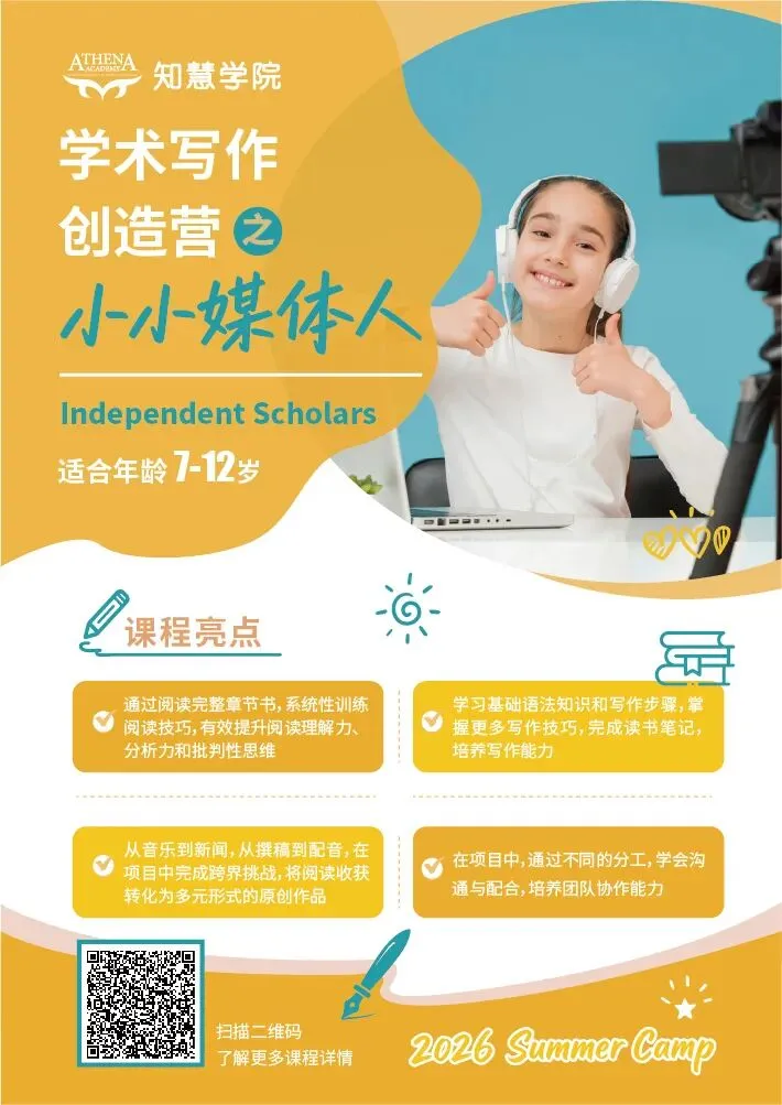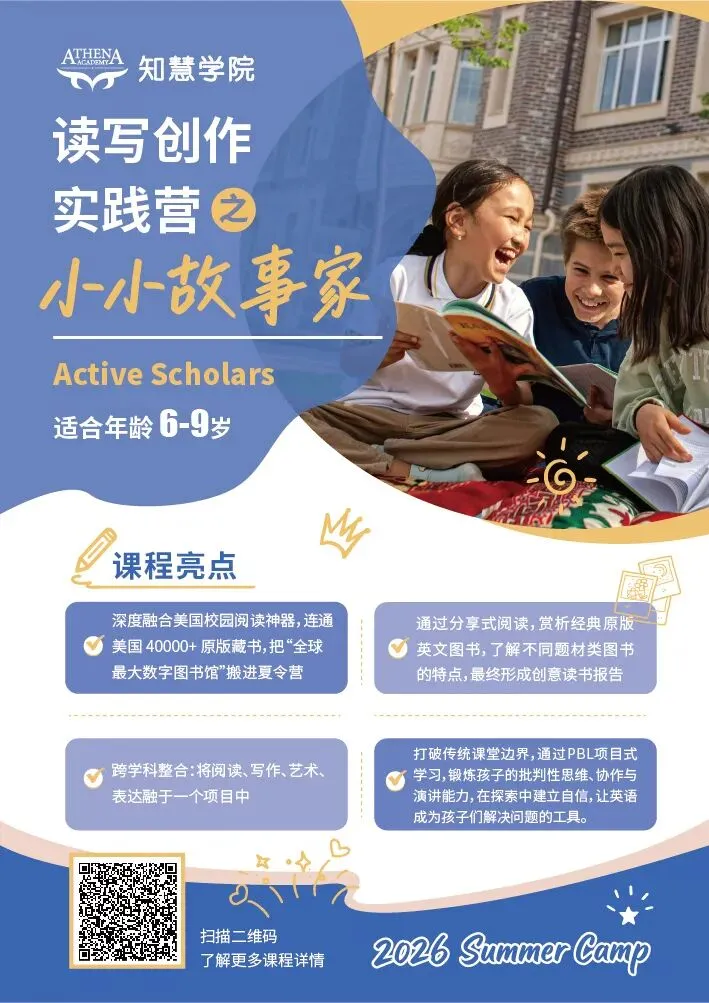 知慧学院专注于青少年综合英语能力的培养,致力于“因应未来”的教育使命。通过原版阅读与系统性写作训练,全面提升中国青少儿的语言素养、思维能力与跨学科应用能力,助力他们构建自主的知识体系,成长为具备全球视野的终身学习者。