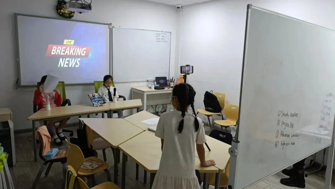孩子们将以小组为单位进行合作,调研收集新闻素材并撰写新闻播报的稿件,并学习如何利用视觉素材来支撑自己的观点。最后,录制属于自己的电视新闻播报视频并在班级进行成果展示。在此过程中,孩子们将培养与人沟通、协作、研究以及问题分析与解决的能力。