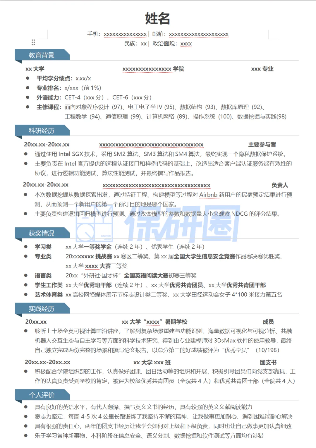 为此整理了由往届成功上岸的学长学姐独家贡献的保研简历模板,贴合保研的实际需求,质量过硬,是保研er打磨简历的优质参考。