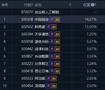 配置:创业板人工智能(970070)+ SHS 人工智能 50(931487)。
