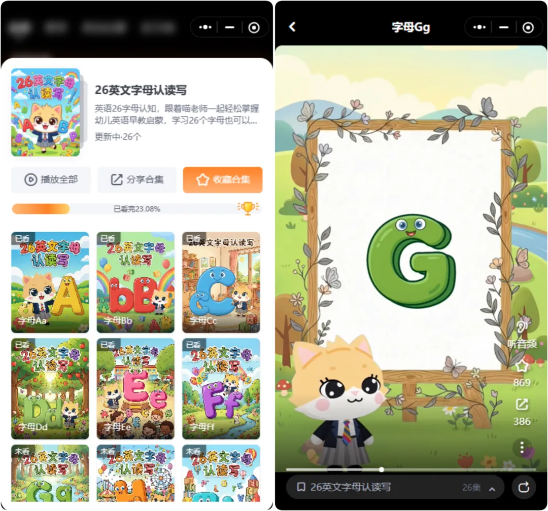 课程体系完整:从26个字母、自然拼读,到单词、句式、绘本,一步不落,完美适配0基础到幼小衔接的娃;