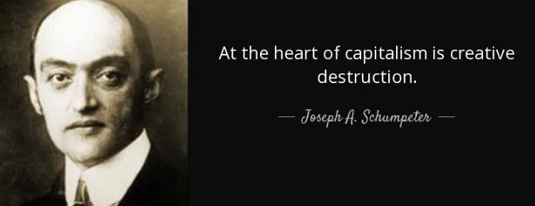 经济学家约瑟夫·熊彼特(Joseph Schumpeter)在1942年提出过一个伟大的概念叫“创造性破坏”(Creative Destruction)。