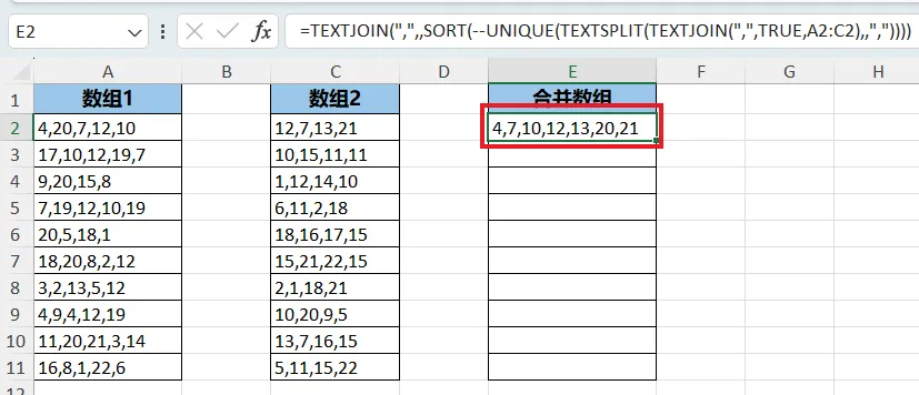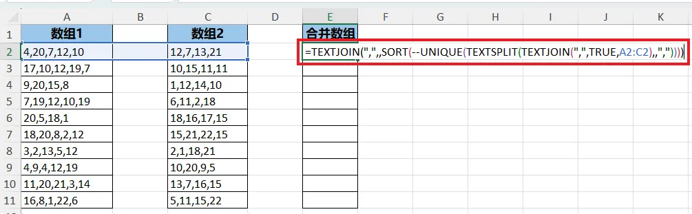解答网友提问:如何合并两个合并单元格中的数组,并且去重且排序?