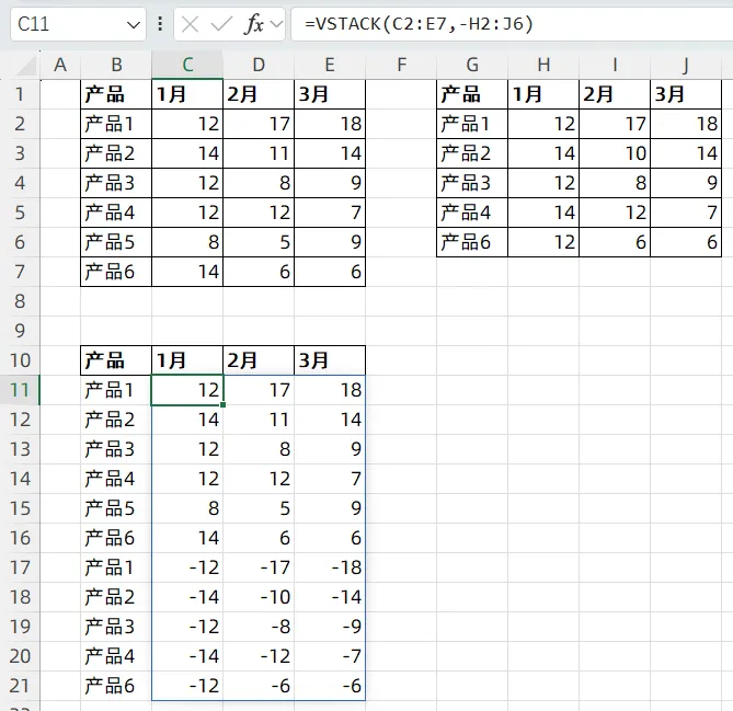 然后用vstack函数将两个表格的数据进行拼接,给第二个表格加上负号。