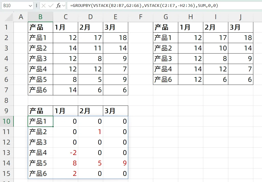 今天就分享一个高效方法 —— 用 GROUPBY + VSTACK 函数组合,直接自动找出两表的差异数据。
