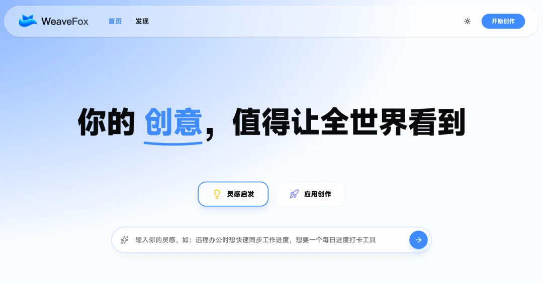 别把创意烂在脑子里,速来体验 AI 创意工具 WeaveFox,仅需简单对话即可让创意快速实现。