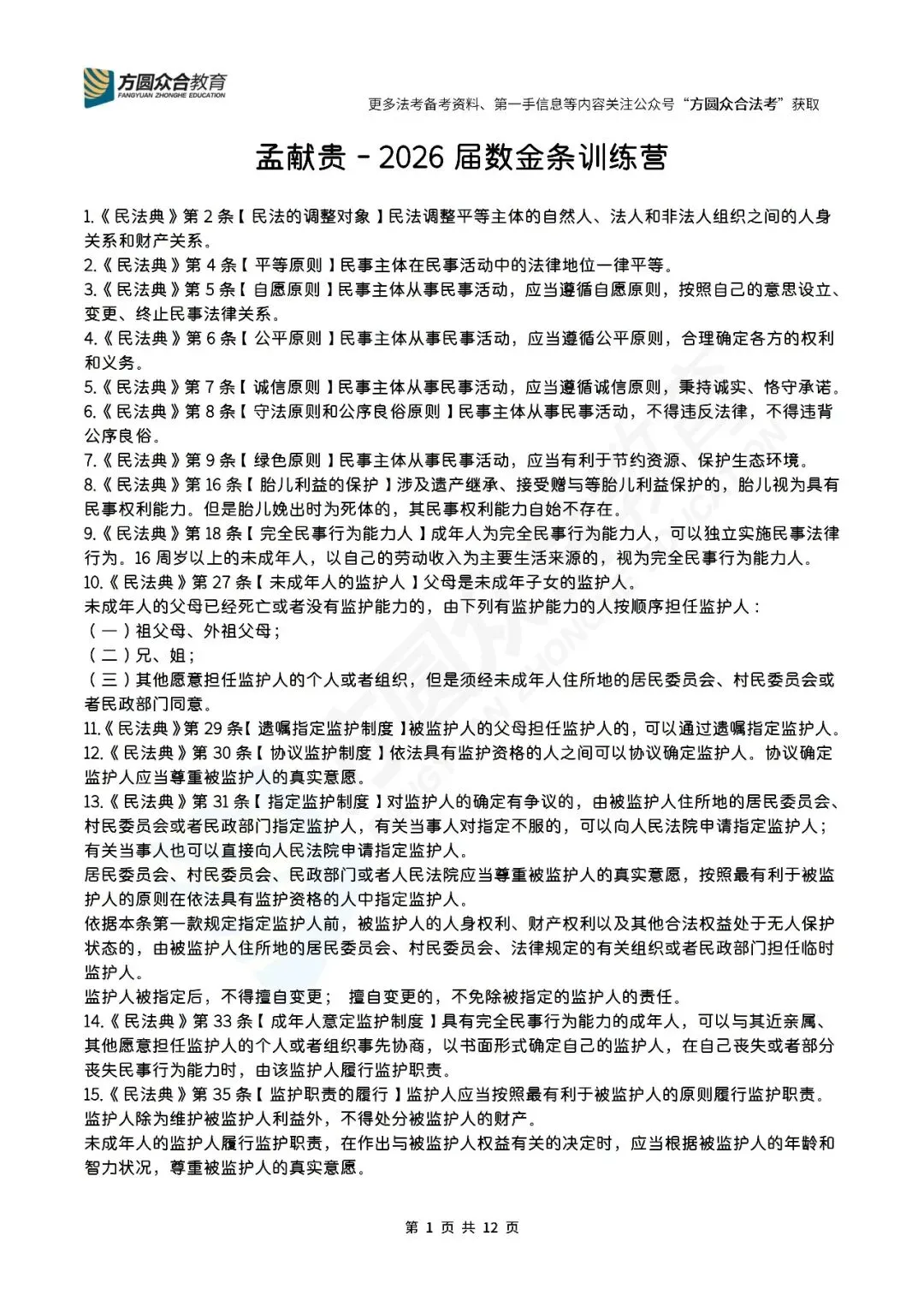 今天,合合菌菌带来了孟献贵老师数金条训练营(1-150)备考干货的汇总,宝子们赶快来下载吧!读法条时,想想你能通过这个法条想到哪些知识点?