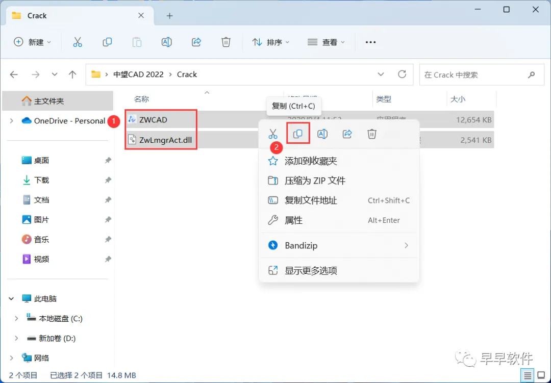 8、回到中望CAD 2022文件夹,找到【Crack】文件夹,右键【打开】它