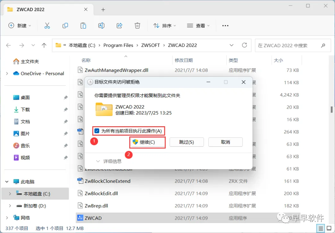 3、找到【ZWCAD_2022】应用程序,右键选择【以管理员身份运行】它