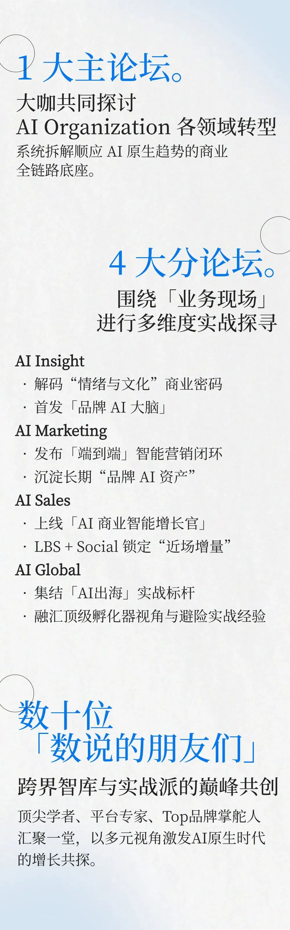 这是一场为增长探索者发起的大会,是技术与商业同行者共同探寻未来方向的场域,也是一场关于如何在 AI 原生时代带领品牌穿越周期的集体思考。