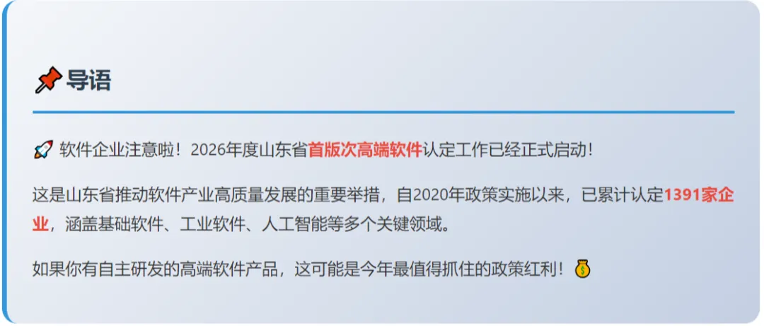 山东省首版次高端软件认定是推动软件产业高质量发展的有力抓手,对企业而言是提升品牌、获取资金、打开市场的重要机遇!