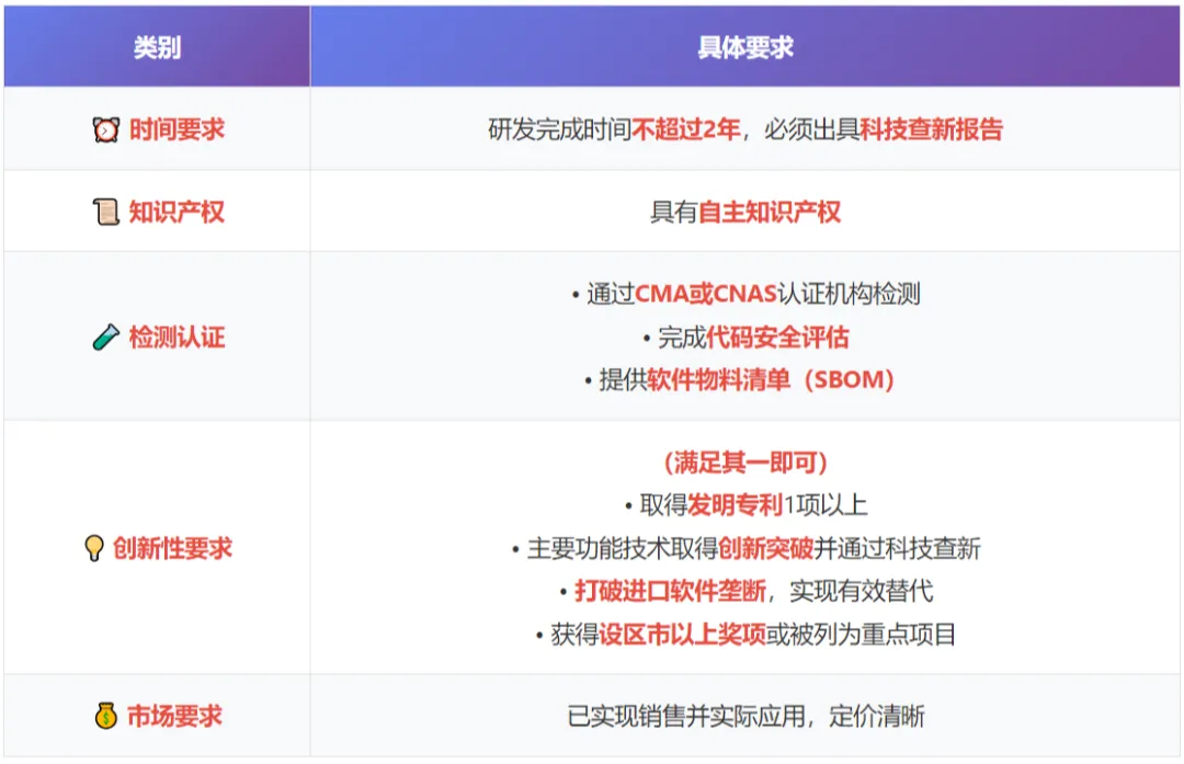 首版次高端软件是指:自主开发或合作开发,功能或性能有重大突破,在该领域具有技术优势或打破市场垄断,拥有自主知识产权,且尚未取得重大市场业绩的软件产品。