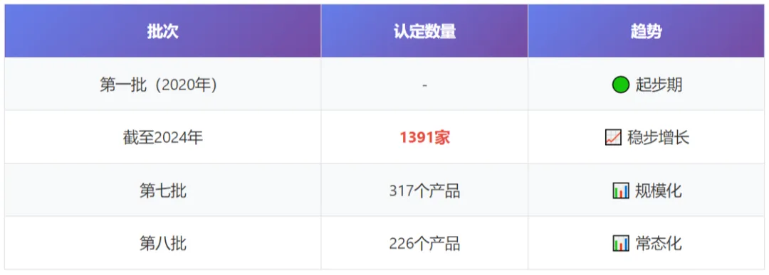 - 数量稳步增长:从2020年起步到2024年累计认定1391家,年均增长率显著