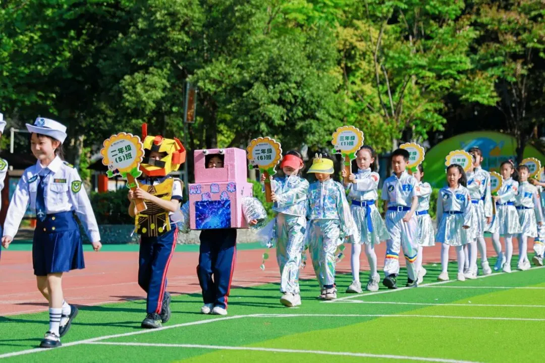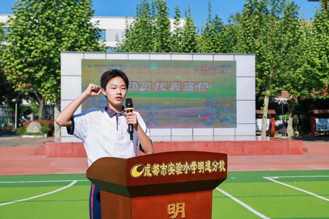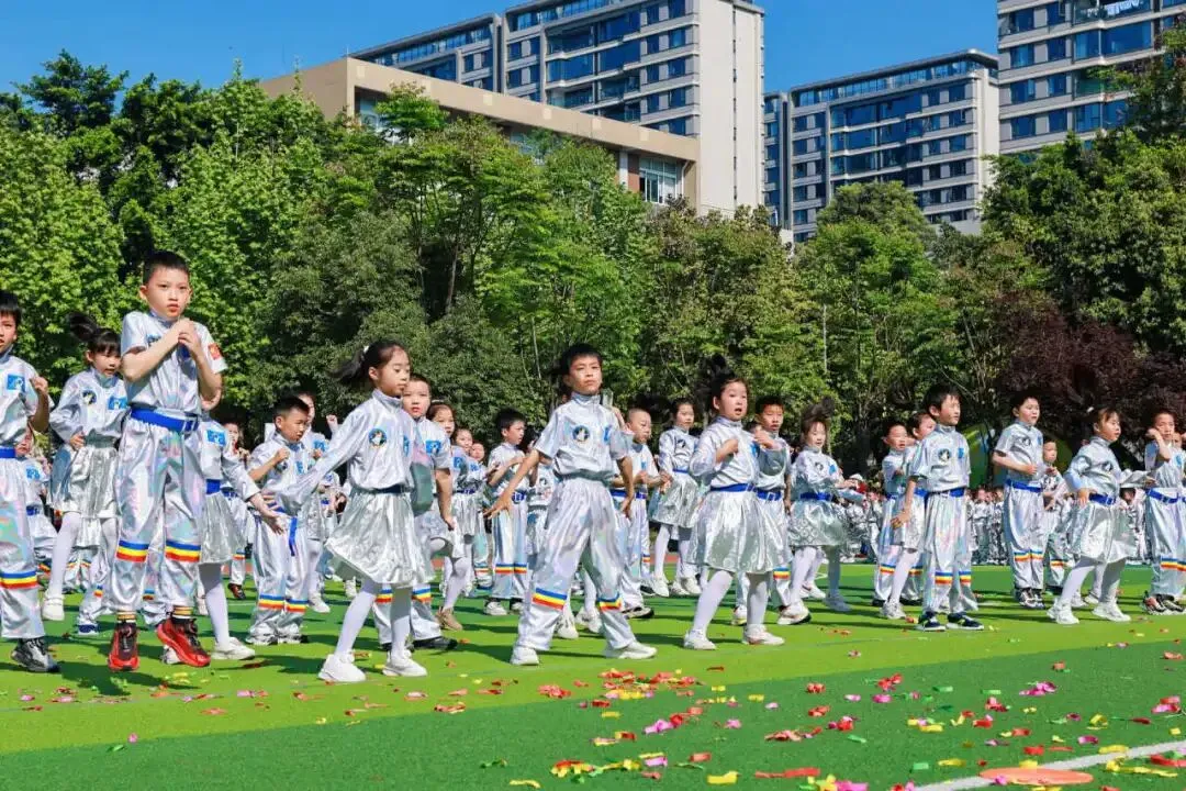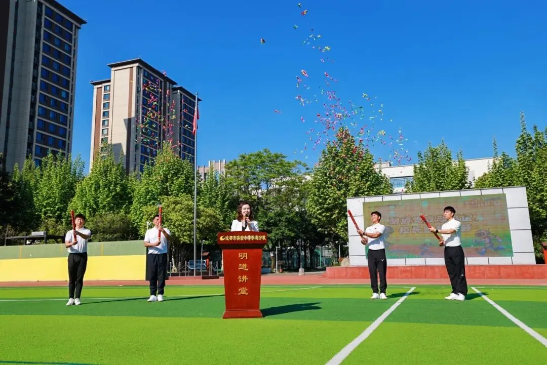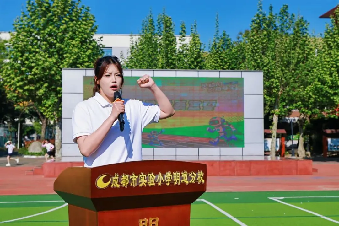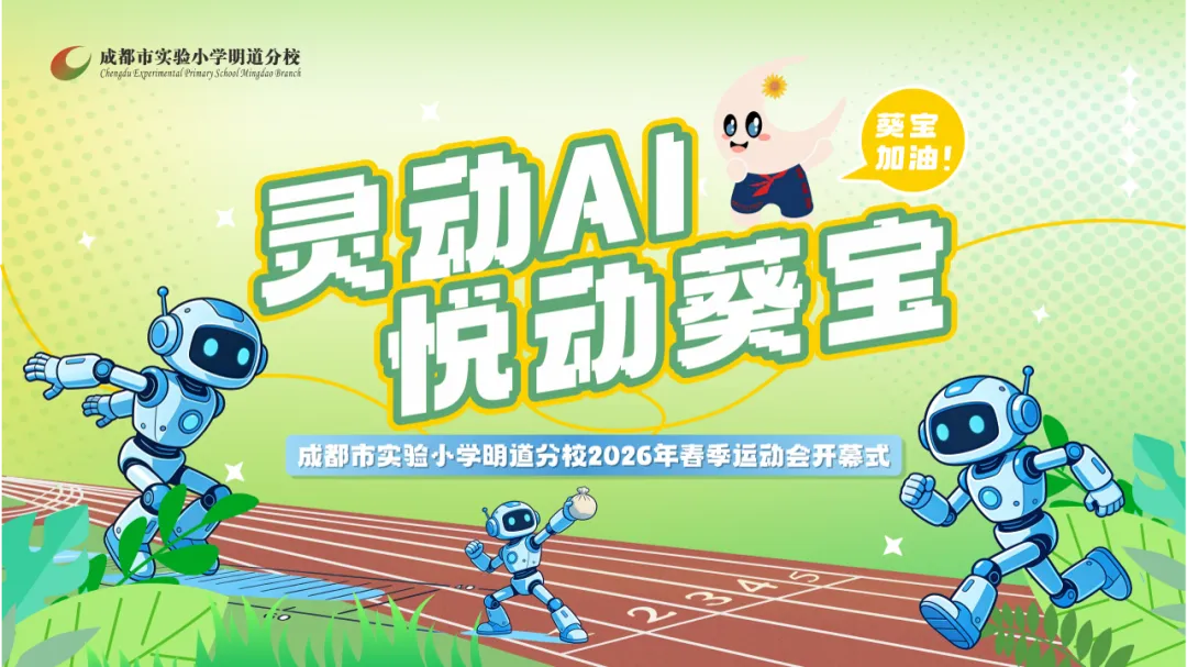 4月9日,成都市实验小学明道分校以“灵动AI 悦动葵宝”为主题的第十六届春季田径运动会隆重开幕。