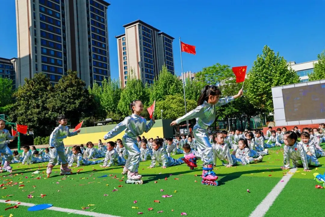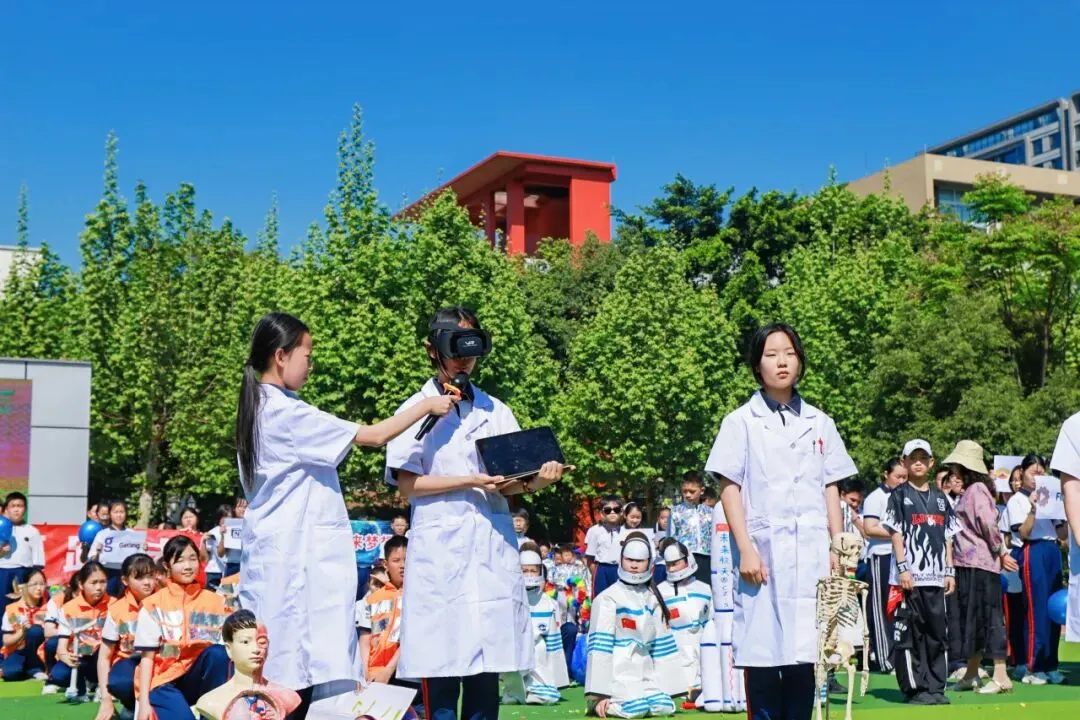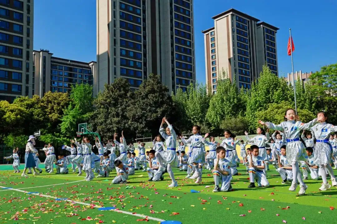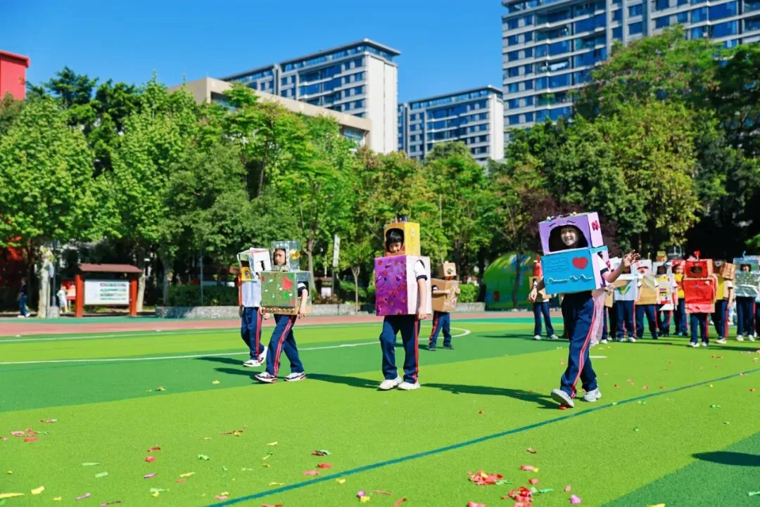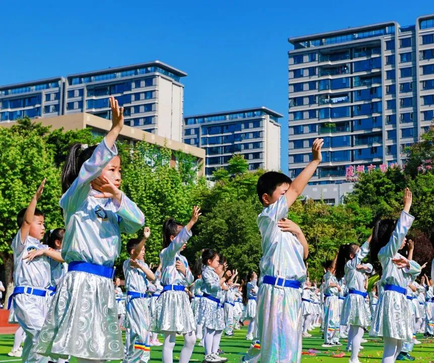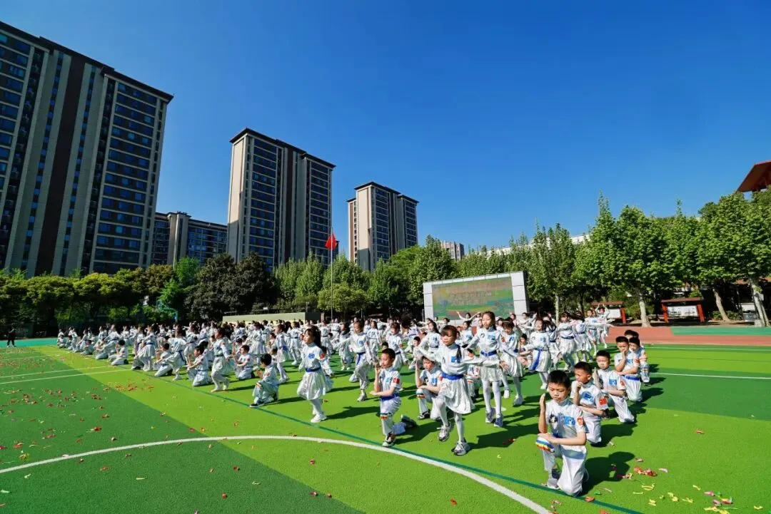 4月9日,成都市实验小学明道分校以“灵动AI 悦动葵宝”为主题的第十六届春季田径运动会隆重开幕。