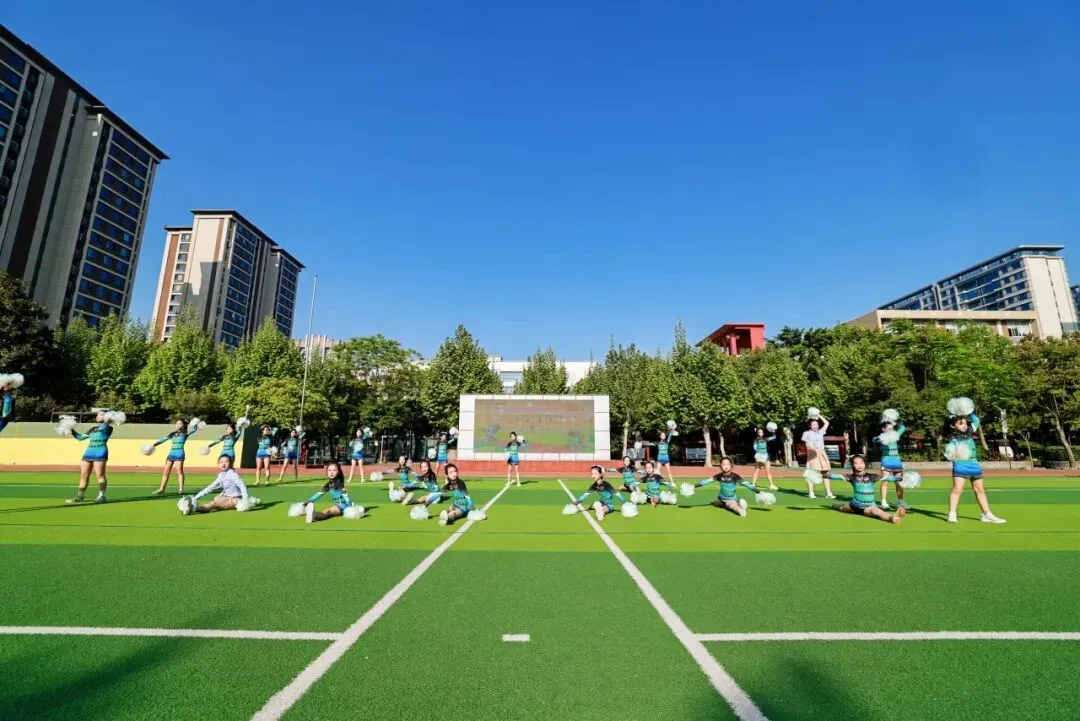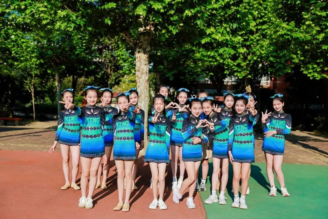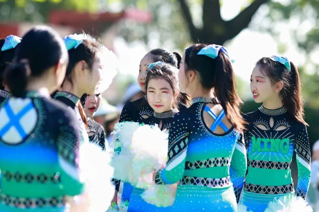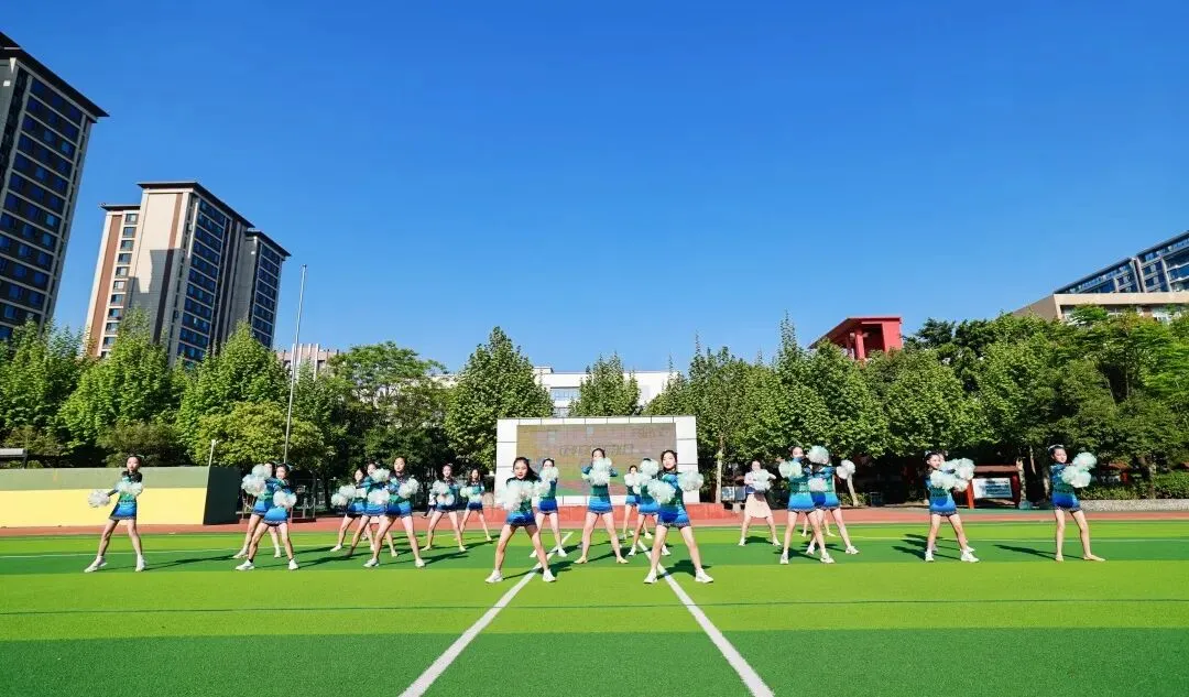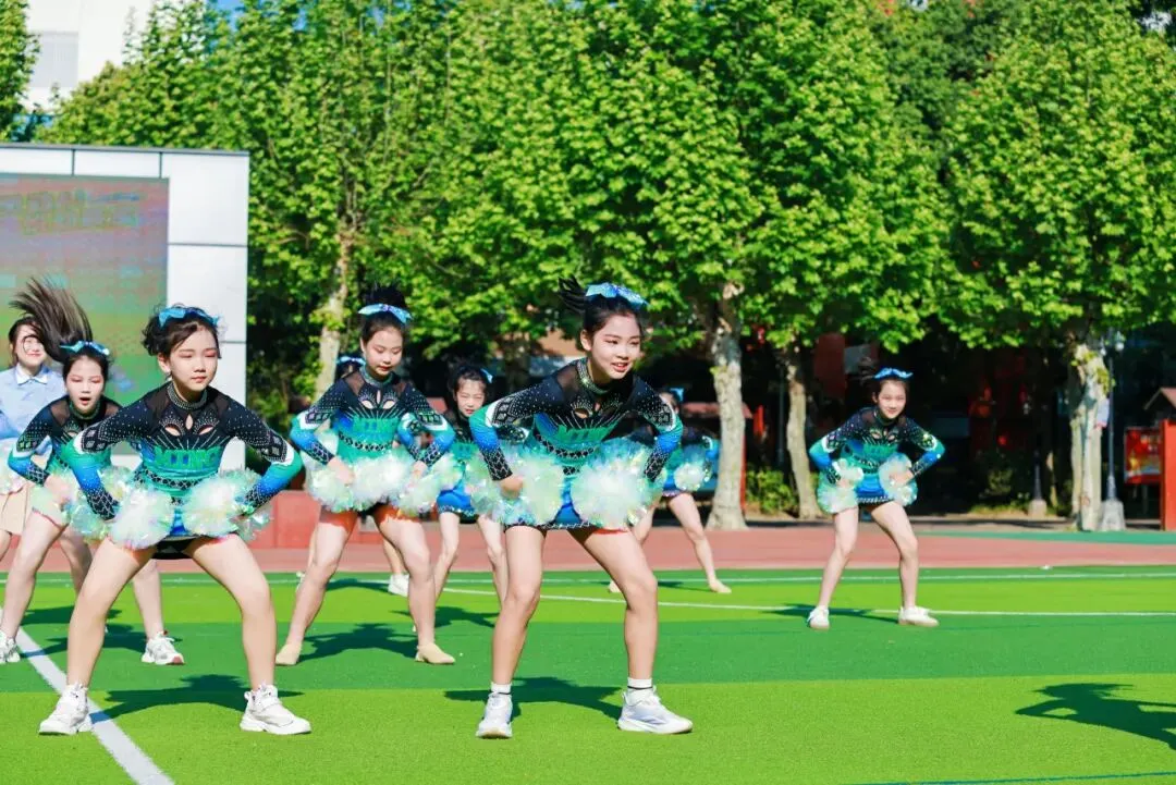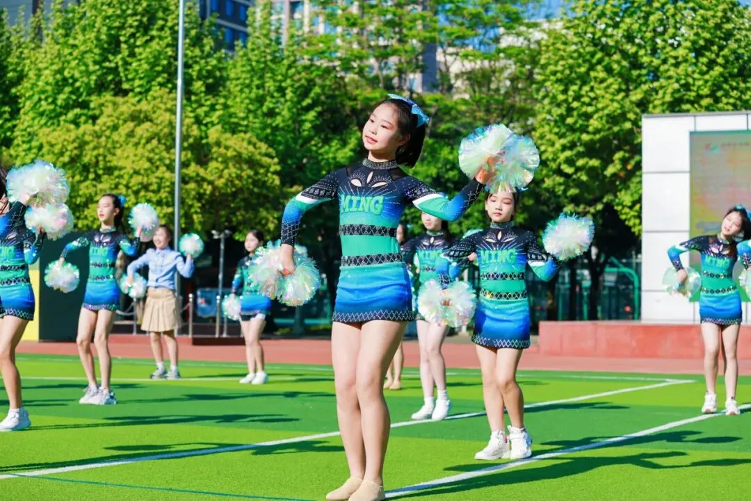 这支曾斩获2025年青羊区“青羊杯”一等奖、成都市“快乐之星”第五名的王牌队伍以花球为笔、以律动为墨,用整齐划一的动作与活力四射的姿态演绎出青春最热烈的模样,将明道学子的阳光与自信展现得淋漓尽致,赢得全场阵阵喝彩。
