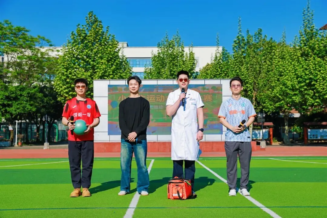 在开幕式特别设置的运动损伤科普环节,成都市第一骨科医院运动促进健康中心主治医师李凯文,康复治疗师刘东阳、李其健,护士雍汉国带来沉浸式健康教育小短剧。