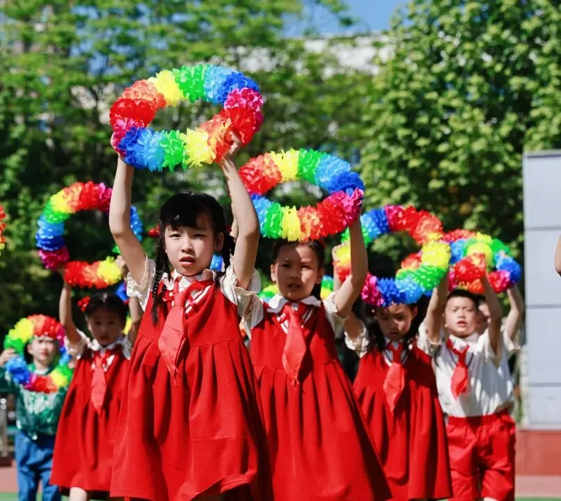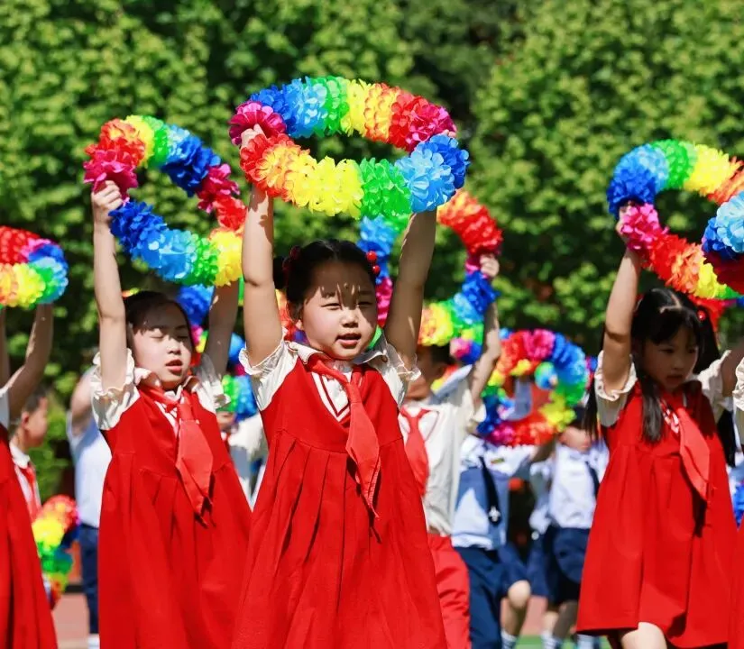 彩旗队率先登场,五彩旗帜迎风舒展,每一面都承载着对运动会的美好祝愿,为赛场铺就最绚烂的底色。