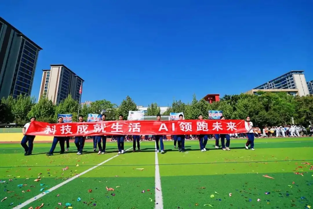 各班运动员代表迈着矫健的步伐依次登场,将AI创意、班级特色融入队形编排。