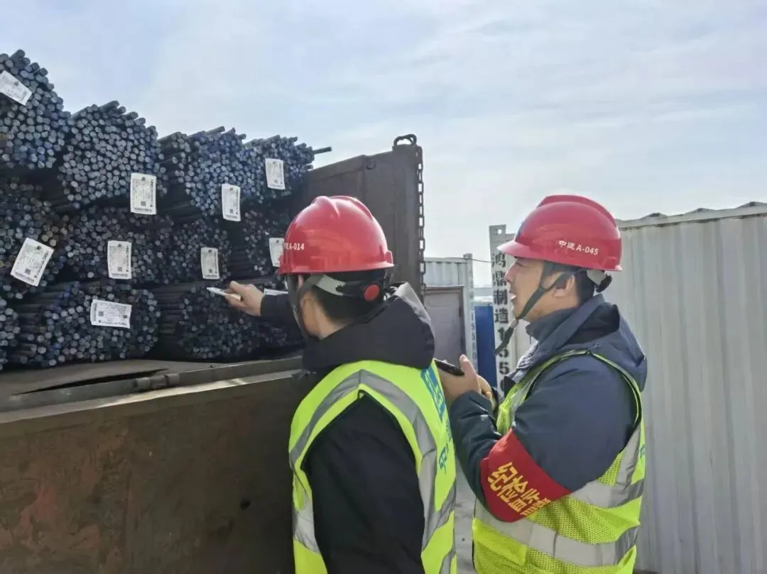 项目纪检监督员扎根钢筋收料盘点一线,对照料单明细逐捆清点、逐项核对,全程旁站监督钢筋进场全流程,他们以严谨与廉洁的作风,展现项目监督卫士的实干风采。