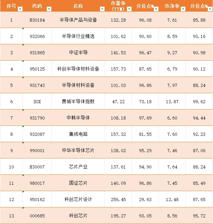 分位点最低:科创芯片设计(950162),分位点仅29.63%,但市盈率高达256.45,是所有指数中最高的,典型的"高成长高估值"。