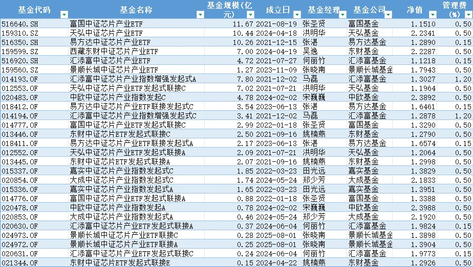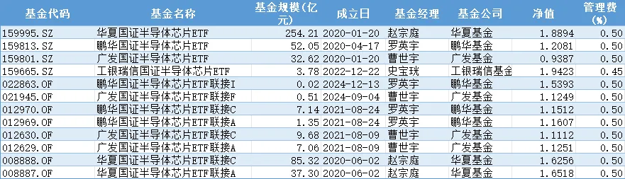 国证芯片(980017):159995(华夏),规模254.21亿,国证芯片赛道龙头