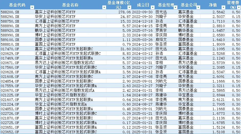 1. 嘉实上证科创板芯片ETF(588200):规模278.06亿