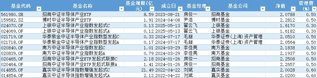 中证半导(931865):跟踪中证半导(931865)的有2只ETF:招商中证半导体产业ETF(561980.SH)、博时中证半导体产业ETF(159582.SZ)
