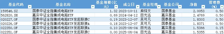 集成电路(932087):跟踪集成电路(932087)的有2只ETF:国泰中证全指集成电路ETF(159546.SZ)、嘉实中证全指集成电路ETF(562820.SH)