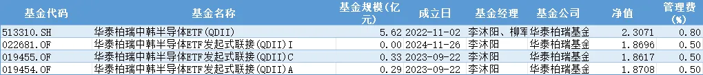 中韩半导体(931790):跟踪中韩半导体(931790)的有1只ETF:华泰柏瑞中韩半导体ETF(513310.SH)