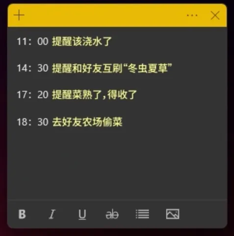 不仅如此我们还会把偷菜时间表发给元宝,让它包装成“本周重点工作计划”,明目张胆置顶在桌面最显眼的位置。