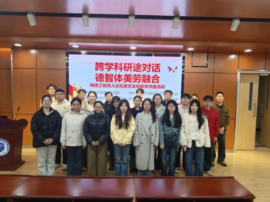 为全面贯彻落实党的二十大和二十届历次全会精神,深入学习贯彻习近平总书记重要回信精神,进一步提高研究生思想政治教育实效性,软件学院联合材料学院、计算机学院、教育学院,以“跨学科研途对话,德智体美劳融合”为主题,打破专业界限,将思政引领、学术交流和素养提升有机结合,引导研究生在思想淬炼、学术钻研、实践锻炼、美育熏陶、劳动培养中协同成长,丰富思政教育形式,提升育人实效。