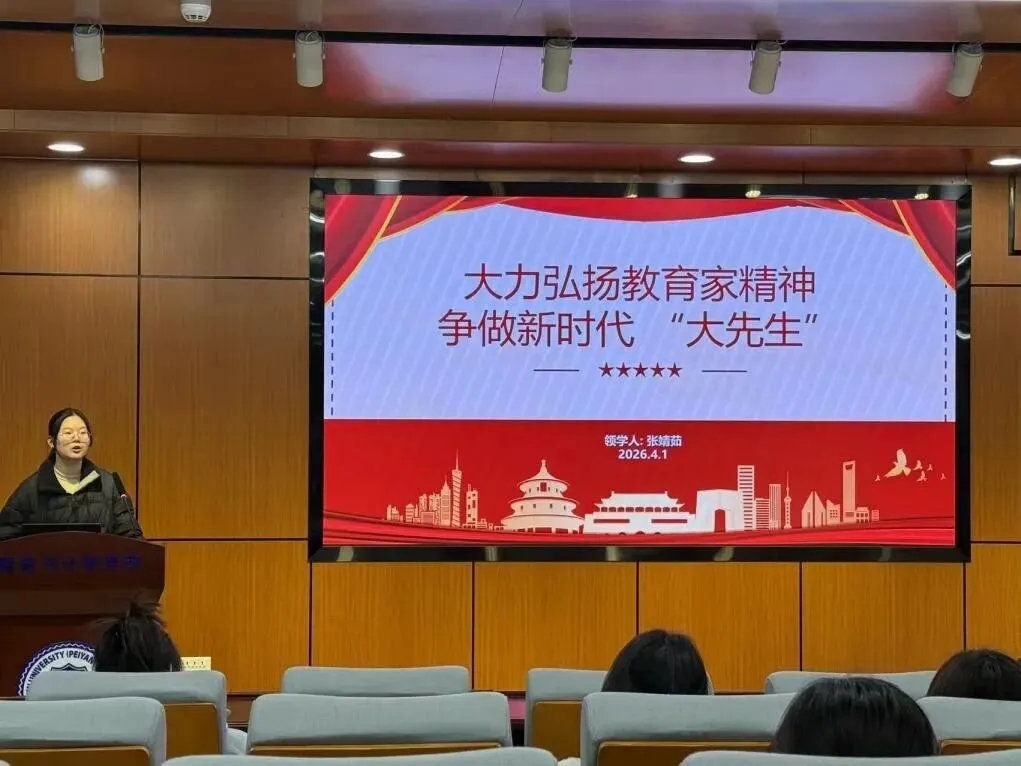 教育学院25级硕士生第二党支部张婧茹,结合专业特色,深入解读了教育家精神的核心内涵。她强调新时代青年党员及学生骨干要践行心有大我、至诚报国的理想信念,将教育家精神融入日常学习和科研实践的全过程。