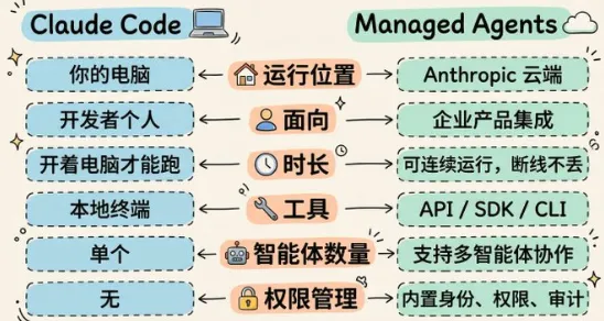 Managed Agents把这事搬到Anthropic的云上。通过API下指令,云端执行,跑几个小时的长任务没问题,同时并行几十个也扛得住。