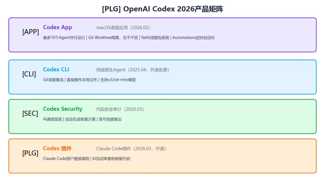图3:OpenAI Codex 2026产品矩阵 — 四款产品各有分工