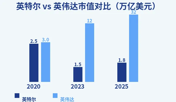 📊 英特尔 vs 英伟达市值对比(万亿美元)